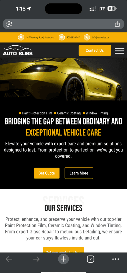 Lack of Structure & Content – With only a single page, there was no room to showcase AutoBliss’ services, making it unclear what the business actually offered.