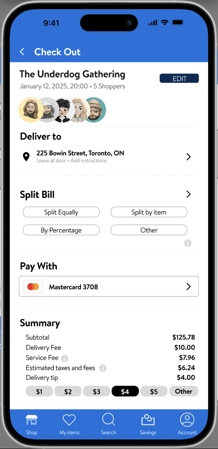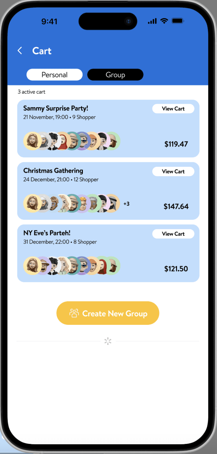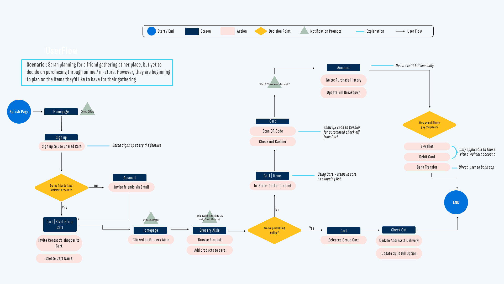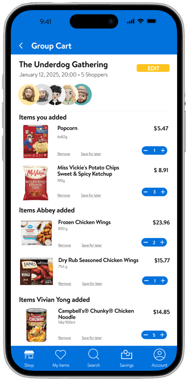Enhancing the shopping experience for groups of people, such as families, roommates, or friends, who frequently make shared purchases or getting their groceries on a weekly basis. Walmart’s app currently allows for individual shopping experiences, but it lacks features that cater to group shopping dynamics. By introducing a “Shared Cart” feature, the Walmart app can allow multiple users to collaboratively add, modify, and review items in real-time.