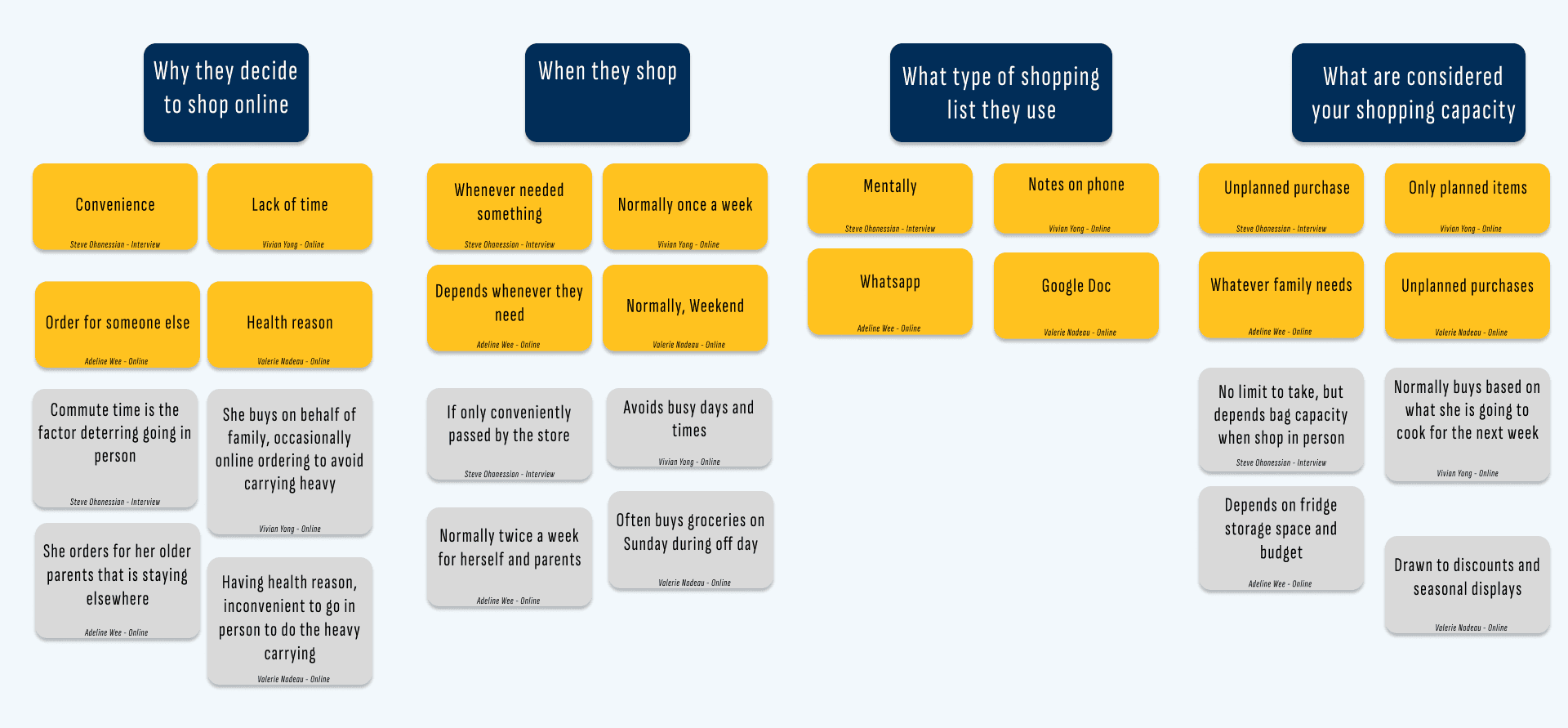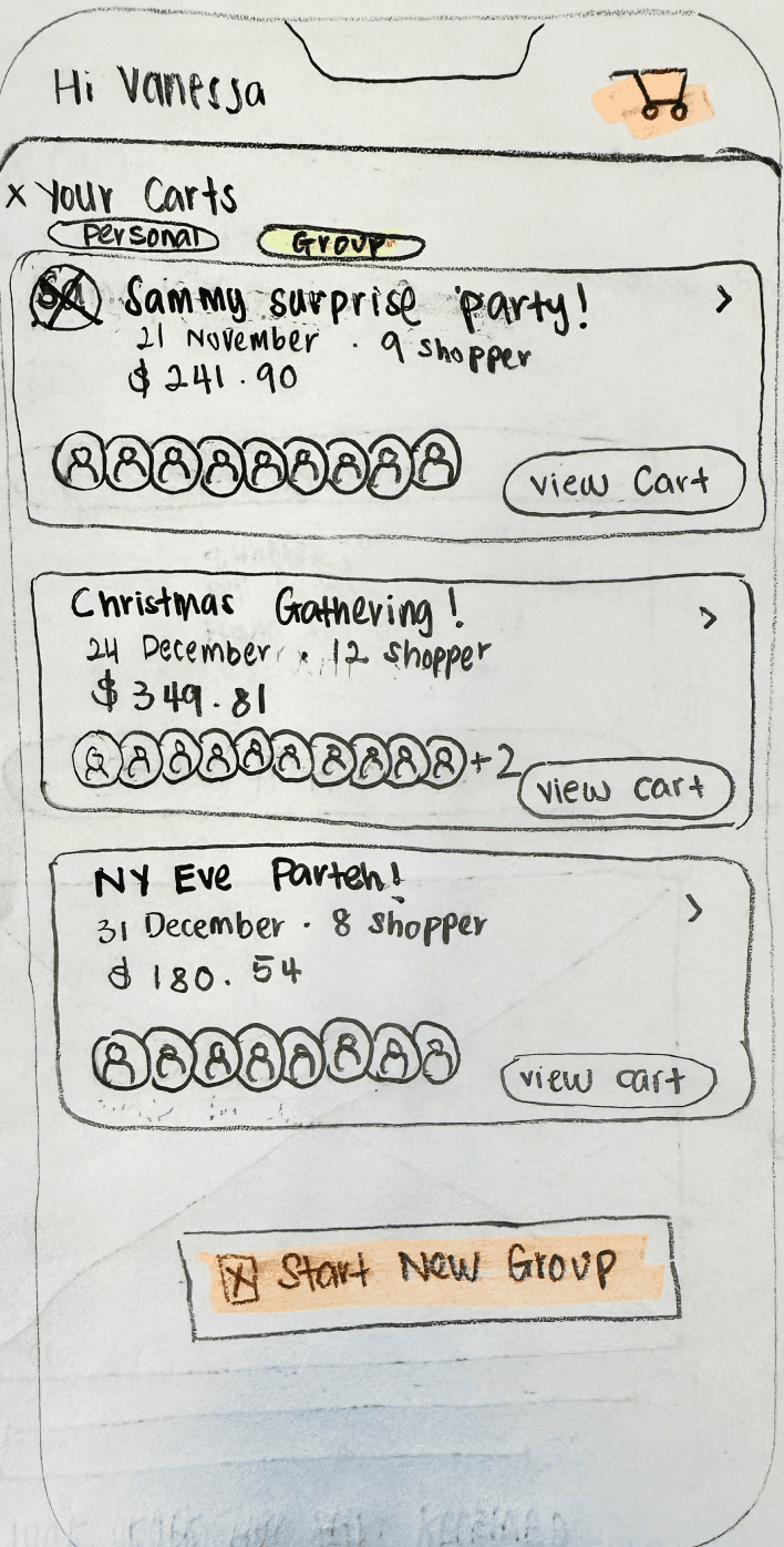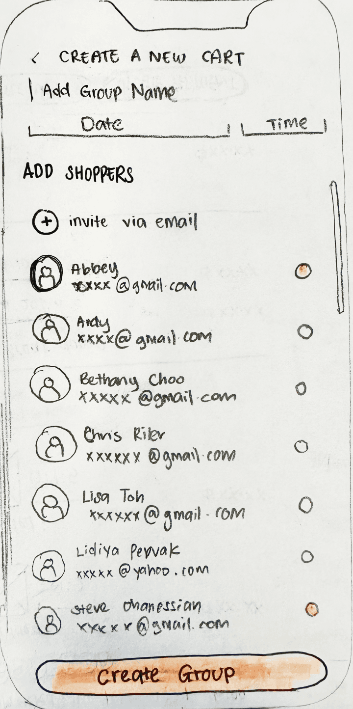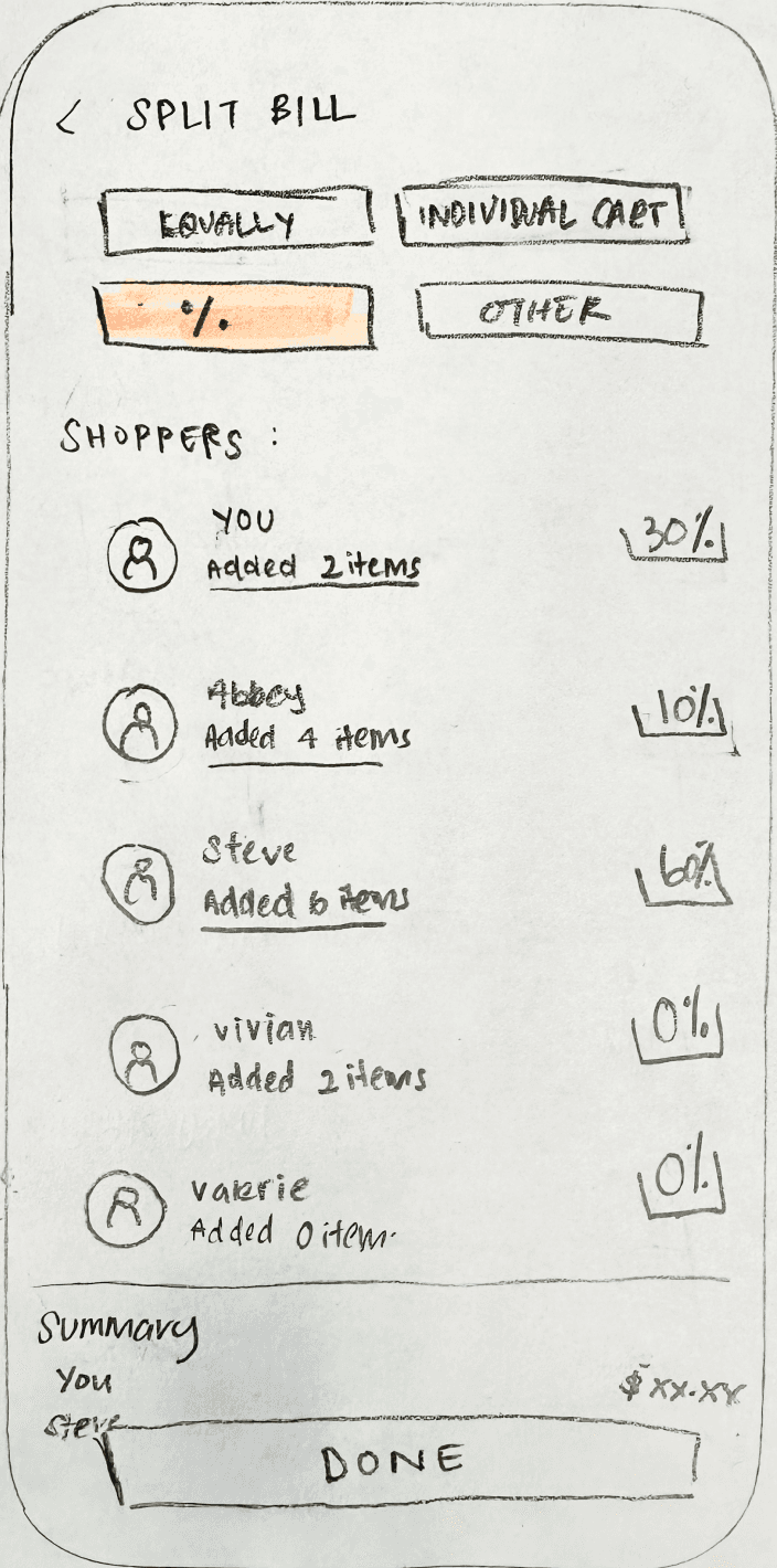 After conducting interviews before diving into the integrated Shared-Cart feature, I learned the style of people doing their group shopping