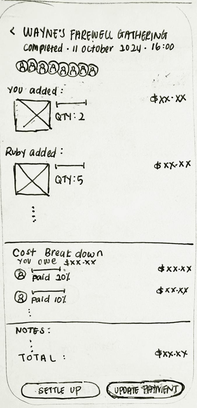 2. Receipt Breakdown: During checkout, a detailed receipt breakdown will be displayed after setting the split bill, ensuring transparency for all participants regarding cost allocation.