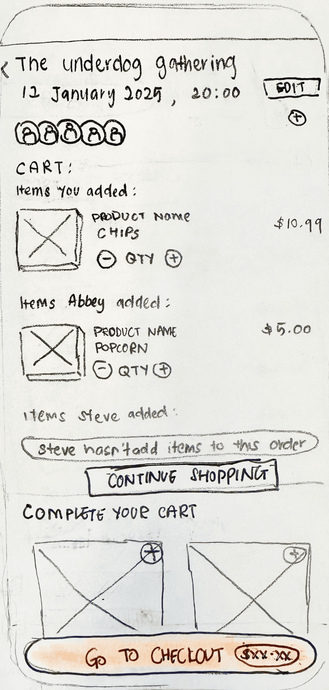 This project presented numerous opportunity for design intervention. I prioritise the happy path first, focusing on real-time cart sharing, to split payments. Designing in the direction that enforced simplicity for user.